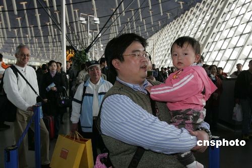 在今天的候機(jī)人群中,一歲多的許姓小臺(tái)胞成為包機(jī)上的首位“特別乘客”,她在爸爸的懷抱中顯得對(duì)包機(jī)非常好奇。年邁的輪椅乘客、孕婦及兒童也率先享受包機(jī)“綠色通道”的溫馨服務(wù)。