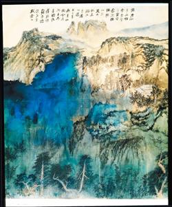 作于一九八一年,歷時(shí)一年七個(gè)月完成的《廬山圖》,即以自創(chuàng)畫法寫廬山雄奇瑰麗的全貌,畫幅高一百八十厘米、寬一千零八厘米,是張大千傳世最大的作品,可謂集畢生畫藝于一爐。