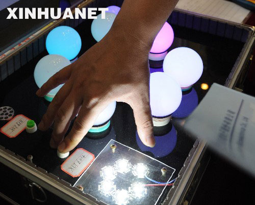 4月8日,臺交會上展出的LED節(jié)能照明產(chǎn)品。 當(dāng)日,第十二屆臺交會在廈門國際會展中心舉行,兩岸參展企業(yè)展出的節(jié)能照明、太陽能應(yīng)用等產(chǎn)品不僅增添了本屆臺交會節(jié)能環(huán)保的特色,同時(shí)受到廣大客商的青睞。 新華社記者姜克紅攝