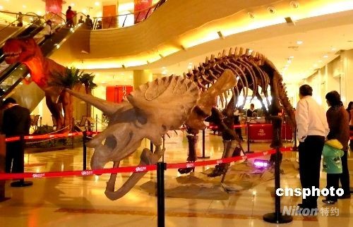 中新網(wǎng)揚州4月11日電:(記者 崔佳明)為慶祝中國大陸首座“全生活廣場”——揚州京華城開業(yè)一周年,今日起舉辦“喜迎周年慶 重返侏羅紀(jì)” 大型恐龍展,呈現(xiàn)數(shù)十件獨特珍貴的恐龍及其他動植物化石,包括恐龍化石骨架、恐龍典型標(biāo)本模型展覽、生蛋龍和三角龍模型、霸王龍等多組大型恐龍。