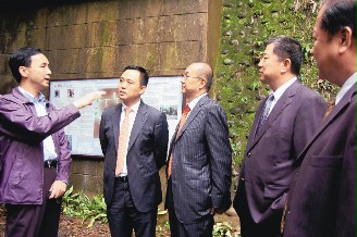 大陸富豪考察團(tuán)在后慈湖軍事隧道前聽(tīng)取解說(shuō)。