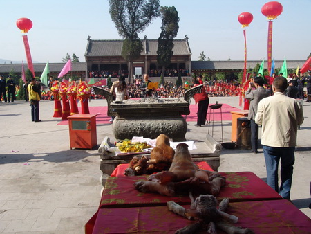 近年來(lái),每逢農(nóng)歷三月十八,都有規(guī)模盛大的民間祭祀活動(dòng)。臺(tái)灣同胞和海外僑胞們,屆時(shí)也不遠(yuǎn)萬(wàn)里,不辭辛苦前來(lái)朝拜和祭祖。今年臺(tái)灣的中華地母至尊道教會(huì),中華道教仙福地母至尊文化交流協(xié)會(huì),臺(tái)北瀘州護(hù)天宮地母管理委員會(huì),臺(tái)中仙福堂地母至尊總會(huì)等民間團(tuán)體組織了上百名信眾前來(lái)參加大典。他們按照中華民族的傳統(tǒng)習(xí)俗,進(jìn)行了獻(xiàn)貢品、讀祭文、祭先祖、求圣土等謁祖朝圣活動(dòng),虔誠(chéng)的祈禱兩岸風(fēng)調(diào)雨順、互利共贏。