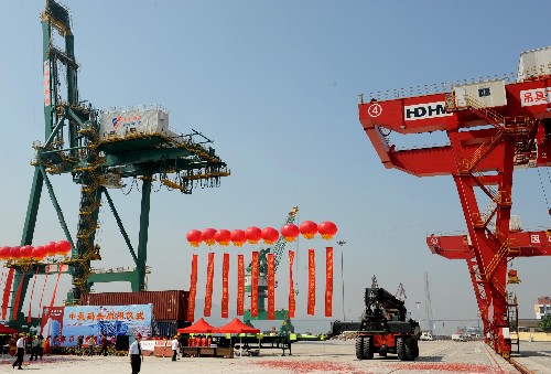 5月16日,福州馬尾兩岸直航貨運專用碼頭——福州港中盈8號碼頭竣工正式投入使用。福州馬尾是祖國大陸離臺灣最近的國家級開發(fā)區(qū)和臺商投資區(qū),馬尾兩岸直航貨運專用碼頭的建成,為加強兩岸經貿往來,擴大兩岸貨運直航提供了便利條件。 新華社記者 張國俊 攝