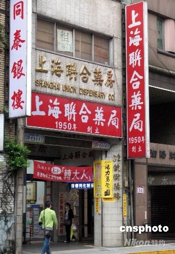 臺(tái)北鬧市區(qū)西門(mén)町附近衡陽(yáng)路上的上海聯(lián)合藥房,被譽(yù)為“臺(tái)灣品牌最持久、貨色最齊全的西藥房”。這家在臺(tái)灣已有五十八年歷史的老藥房,是從光緒年間的上海中法藥房演變而來(lái)。藥房的創(chuàng)立與陳立夫、陳果夫兄弟有關(guān),創(chuàng)始人許曉初是當(dāng)年的“海上聞人”、藥界巨子。如今,上海聯(lián)合藥房可提供六千余種西藥及難覓的復(fù)方中成藥。 中新社發(fā) 許曉青 攝