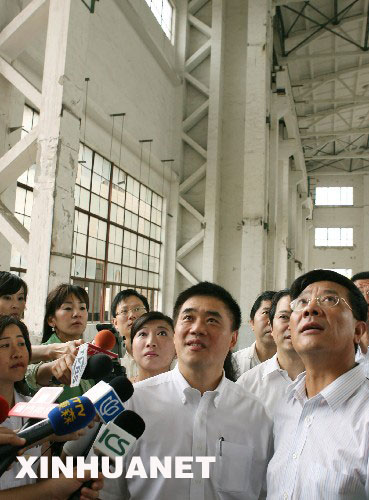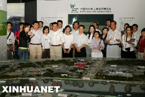 6月26日,郝龍斌一行考察臺(tái)北的兩個(gè)參展案例選址。當(dāng)日,臺(tái)北市市長(zhǎng)郝龍斌一行參觀上海世博會(huì)園區(qū)規(guī)劃模型并實(shí)地考察正在建設(shè)中的“城市最佳實(shí)踐區(qū)”。郝龍斌對(duì)臺(tái)北兩個(gè)參展案例在“城市最佳實(shí)踐區(qū)”中獲得的展示位置和場(chǎng)館規(guī)劃“很滿意”,表示要以此次參展為起點(diǎn),創(chuàng)造臺(tái)北與上海合作交流的新模式。 新華社記者 任瓏 攝