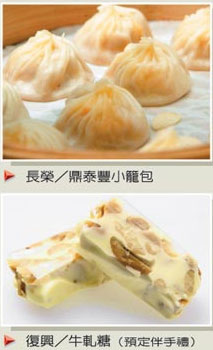 長榮、立榮則依路線、設(shè)計,以目的地餐飲為特色的餐點,由大陸啟程的航班,商務(wù)艙旅客可在抵臺前,吃到紅燒牛肉湯面、臺式三杯雞、鼎泰豐小籠湯包;經(jīng)濟艙則有彰化肉圓、麻油雞與鹵肉飯。