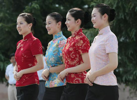 隨著直航的日期臨近,期待已久的空姐服裝昨天下午在東航江蘇公司火爆出爐。與以往“清一色”的空乘服相比,直航時每位空姐所穿的服裝打破了常規(guī),可以用“五顏六色”來形容。該公司客艙部經(jīng)理吳國蘭介紹,云錦服裝都是量身定做的,最貴的一套身價過萬元。