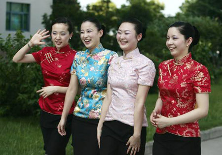 隨著兩岸直航的日益臨近,期待已久的空姐服裝7月1日下午在東航江蘇公司出爐。