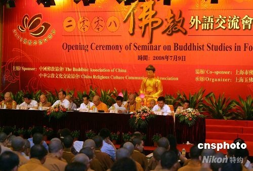 7月9日,“2008年佛教外語交流會”在上海玉佛寺舉行,海內(nèi)外百余位佛教界代表濟濟一堂,以英、韓、日等多種語言暢談開展國際交流的經(jīng)驗與心得。 中新社發(fā) 湯彥俊 攝