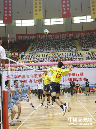 中國(guó)臺(tái)灣網(wǎng)7月22日消息 由中華全國(guó)青年聯(lián)合會(huì)、福建省政府共同主辦的第三屆兩岸青年聯(lián)歡節(jié)海峽西岸行活動(dòng)之一——第三屆海峽兩岸青少年排球邀請(qǐng)賽19日在漳州華陽(yáng)體育館開幕。全國(guó)青聯(lián)主席楊岳,福建省委常委、宣傳部長(zhǎng)唐國(guó)忠出席開幕式。