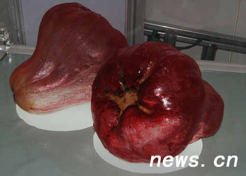 琉璃制作的臺(tái)灣水果蓮霧。在北京臺(tái)灣“祥云小屋”,用琉璃制作的水果栩栩如生,令人驚嘆。 新華網(wǎng) 前衛(wèi) 攝