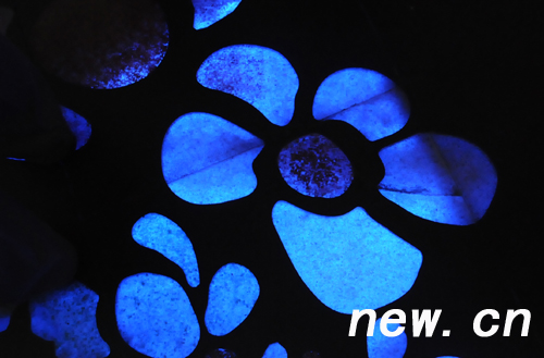 臺(tái)灣“祥云小屋”內(nèi)的地板,隨著燈光的變化,出現(xiàn)不同的精美花卉圖案。 新華網(wǎng) 前衛(wèi) 攝