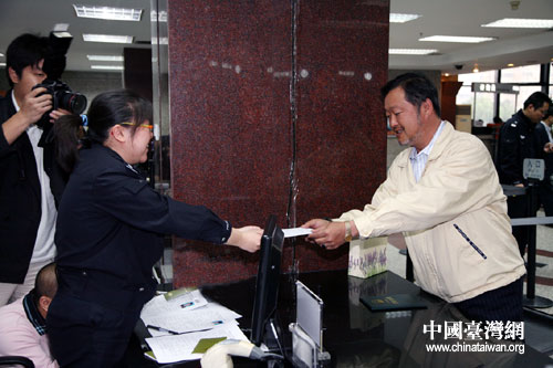 上午9時(shí),北京穩(wěn)潔工貿(mào)有限公司法人——臺(tái)灣居民賴東春先生,到北京市公安局出入境管理處遞交了換發(fā)五年有效《臺(tái)灣居民來(lái)往大陸通行證》(五年有效)的申請(qǐng),成為在京辦理此類證件的第一位申請(qǐng)人,標(biāo)志著臺(tái)胞無(wú)法在京申請(qǐng)補(bǔ)換發(fā)《臺(tái)灣居民來(lái)往大陸通行證》成為歷史!