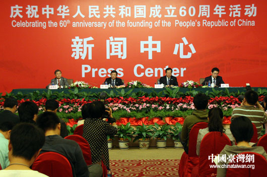 29日下午,國慶新聞中心召開發(fā)布會,上海世博會組委會委員、組委會聯(lián)絡小組常務副組長、中國貿促會副會長王錦珍與上海市常務副市長、世博會執(zhí)委會常務副主任楊雄介紹了2010年上海世博會的各項籌備情況,并回答記者提問。(中國臺灣網 鐘寶華 攝)