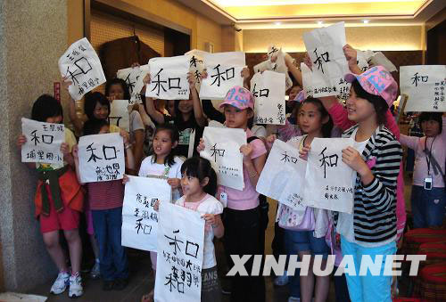 10月3日是中秋節(jié),在臺灣南投縣魚池鄉(xiāng)的原力博物館里,當(dāng)?shù)氐?0名小學(xué)生與來自浙江省溫州市的23名一年級學(xué)生舉行歡度中秋活動。兩岸學(xué)生開展了書寫“和”字書法友誼賽,并一起學(xué)習(xí)“ 和”字的含義及演變。