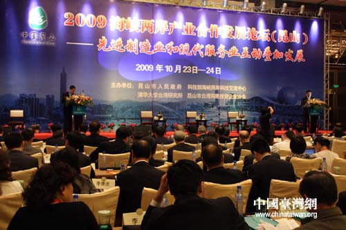 10月23日上午,以“制造業(yè)和服務(wù)業(yè)互動疊加發(fā)展”為中心議題的“2009海峽兩岸產(chǎn)業(yè)合作發(fā)展論壇(昆山)”啟幕。(中國臺灣網(wǎng) 鐘寶華 攝)