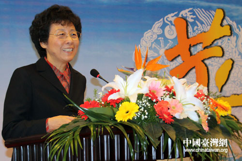 全國人大常委會副委員長、民進(jìn)中央主席嚴(yán)雋琪致辭。(中國臺灣網(wǎng) 董潔 攝)
