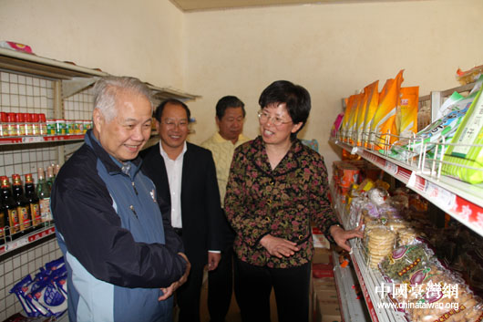 11月6日,親民黨副主席張昭雄率領(lǐng)出席兩岸農(nóng)漁水利合作交流會的53名臺灣代表到上海崇明島華西村考察。圖為張昭雄參觀村內(nèi)為民服務(wù)超市。(中國臺灣網(wǎng) 鐘寶華 攝)