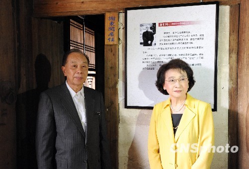 11月8日,前來中國國民黨直屬臺灣黨部舊址——福建永安復(fù)興堡參觀的臺灣實踐大學(xué)董事長、原臺灣副領(lǐng)導(dǎo)人謝東閔之子謝孟雄(左)與夫人中國國民黨原副主席、中國國民黨中央評議委員會主席團主席林澄枝(右)在該舊址內(nèi)其父謝東閔居住過的房間前合影留念。位于福建永安燕西街道文龍村內(nèi)的復(fù)興堡,始建于清代,與福建戰(zhàn)時省會永安一起見證了抗戰(zhàn)風(fēng)云。為了便于進一步開展工作,1943... 中新社發(fā) 劉可耕 攝