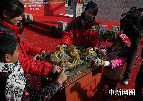 中新網(wǎng)北京11月10日電 (魏恒)經(jīng)過(guò)一夜大雪,八達(dá)嶺銀裝素裹。10日上午,兩岸百名抗戰(zhàn)高級(jí)將領(lǐng)后人會(huì)聚長(zhǎng)城腳下,將采自著名抗日戰(zhàn)場(chǎng)的土壤放入大鼎,永久保存于長(zhǎng)城博物館。