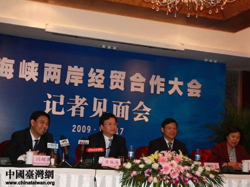 17日下午,“海峽兩岸經(jīng)貿(mào)科技合作大會(huì)”組委會(huì)舉行記者見面會(huì)。組委會(huì)主任、陜西省副省長(zhǎng)景俊海出席會(huì)議并講話。組委會(huì)副主任、省臺(tái)辦主任閆超英通報(bào)了會(huì)議籌備工作情況,“大會(huì)”組委會(huì)副主任、省商務(wù)廳廳長(zhǎng)李雪梅介紹了陜西參會(huì)企業(yè)及有關(guān)重點(diǎn)招商推介項(xiàng)目情況。(中國(guó)臺(tái)灣網(wǎng) 肖燕 攝)