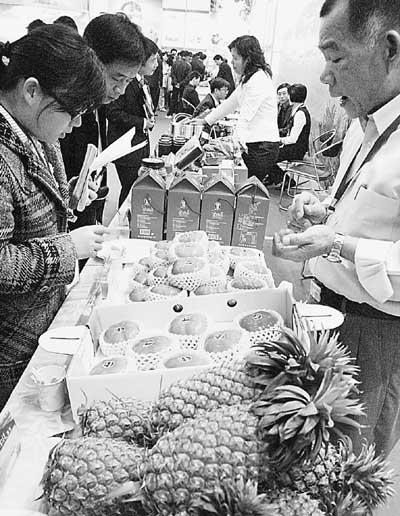 大陸居民在海峽兩岸農(nóng)展會(huì)上挑選臺(tái)灣水果。