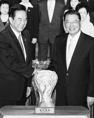第四次兩岸兩會(huì)領(lǐng)導(dǎo)人會(huì)談,雙方交換禮物。
