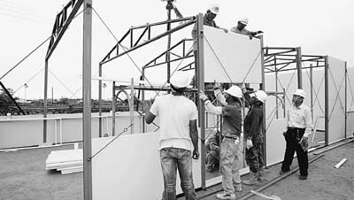 大陸捐贈(zèng)臺(tái)灣的活動(dòng)板房正在搭建中。