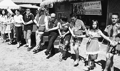 大陸游客與臺(tái)東阿美同胞共舞。(圖片來源:人民圖片)