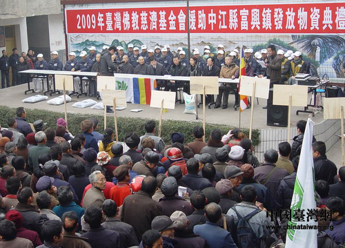 2008年“5.12”大地震后,慈濟(jì)人帶著飛躍海峽的無私大愛,于5月14日即來到德陽,他們帶著“安身、安心、安生”的援助計劃一直陪伴著德陽災(zāi)區(qū)群眾走到現(xiàn)在。在六百多個日子里,臺灣慈濟(jì)會30梯次12000余名慈濟(jì)人以愛的接力方式來到德陽,為德陽受災(zāi)鄉(xiāng)親免費(fèi)供應(yīng)熱食81萬余人次,急難醫(yī)療援助9萬人次,向什邡、綿竹兩市的19700余戶受災(zāi)群眾發(fā)放了1000余元的生活包,捐建了什邡市5所學(xué)校的板房教室和設(shè)施;在災(zāi)后重建中,慈濟(jì)捐建了什邡、旌陽的5所學(xué)校和中江縣富興鎮(zhèn)光明村91戶農(nóng)房。