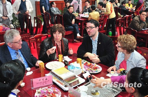 2月27日,來(lái)自德國(guó)的嘉賓正在首屆海峽兩岸閩南文化節(jié)活動(dòng)之一的“千人品茗”活動(dòng)上,與上千名來(lái)自海內(nèi)外嘉賓共同愉快感受茶藝。“和諧海西·千人品茗”活動(dòng)共有兩場(chǎng),在泉州中國(guó)閩臺(tái)緣博物館內(nèi)舉行。 中新社發(fā) 張麗君 攝