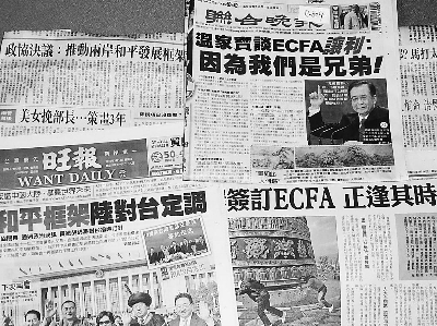 今天下午出版的《聯(lián)合晚報(bào)》在頭版頭條以《溫家寶談ECFA讓利:因?yàn)槲覀兪切值堋窞轭},圖文并茂報(bào)道了全國(guó)人大閉幕和溫家寶總理的記者會(huì)!堵(lián)合報(bào)》特派記者汪莉絹因?yàn)樵谟浾邥?huì)上向溫總理提出了有關(guān)兩岸的問(wèn)題,溫家寶總理對(duì)此進(jìn)行了詳細(xì)解答,為此引發(fā)了島內(nèi)媒體的廣泛報(bào)道和熱烈討論!堵(lián)合晚報(bào)》還在第二版幾乎用了整版,進(jìn)行相關(guān)報(bào)道。