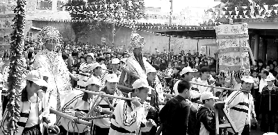臺(tái)灣的“烑神”活動(dòng)其實(shí)是一種偶像戲!盀魃瘛钡涠Y開(kāi)始時(shí),廟宇抬出模仿開(kāi)漳先賢神像的紙制偶像,20位青壯年立即隱身于這些偶像中,并抬起偶像隨古樂(lè)舞蹈。每座偶像由脫胎紙漆材料做成,高約3米,其腰部裝飾紙制猛獸頭,“獸口”大開(kāi)。隱身于偶像的青壯年頭部剛好位于猛獸頭處,兩眼通過(guò)張開(kāi)的“獸口”看路。臺(tái)灣“烑神”源于唐代的“軍陣舞”,如今,這些古時(shí)“烑神”儀式在閩南已很少看到,但它卻在臺(tái)灣代代相傳。這是中原古文化在臺(tái)灣發(fā)揚(yáng)光大的又一例證。(王一雄 林榕慶 謝鵬志 文/圖)