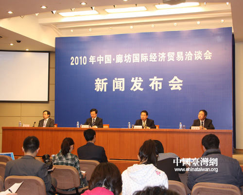 4月23日下午,2010年中國(guó)·廊坊國(guó)際經(jīng)貿(mào)洽談會(huì)新聞發(fā)布會(huì)在國(guó)務(wù)院新聞辦新聞發(fā)布廳舉行。(中國(guó)臺(tái)灣網(wǎng) 趙靜 攝)