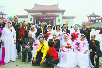 這525對(duì)夫婦有金婚夫婦,有銀婚夫婦,也有新婚燕爾的新人。當(dāng)天一大早,他們便手牽手依次進(jìn)入媽祖祖廟天后廣場(chǎng)。男的身穿西裝打著領(lǐng)帶,女的身著白婚紗手捧鮮花,匯聚到媽祖娘娘的膝下,匯聚到“心連心”演出現(xiàn)場(chǎng),祈愿愛(ài)情永恒、幸福一生,祈愿海峽兩岸和平共榮,兩岸同胞幸福美滿。