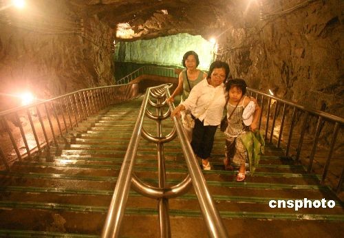 臺(tái)灣金門古崗翟山小艇坑道,是軍方釋出交由金門公園管理處接管開放的第一座觀光坑道,不但鬼斧神工,且有冬暖夏涼的特性,是夏日游客的最愛。 中新社發(fā) CNA 攝