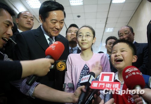 劉奇葆還特意向媒體介紹了兩位來自汶川地震災區(qū)的小朋友,一位是抗震小英雄林浩,一位是失去左腿的“芭蕾女孩”李月。兩位小朋友表示,臺灣有許多美景,想去阿里山玩。
