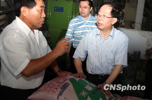 5月24日,海峽兩岸農(nóng)業(yè)交流協(xié)會(huì)名譽(yù)會(huì)長(zhǎng)危朝安結(jié)束為期6天的臺(tái)灣“鄉(xiāng)村之旅”,搭機(jī)自高雄小港機(jī)場(chǎng)離臺(tái),他向中新社記者表示,此次走訪臺(tái)灣北、中、南,探農(nóng)情、詢合作、盼多贏,收獲良多。圖為危朝安(右)探訪高雄縣美濃鎮(zhèn)一家“美農(nóng)米”碾米廠。 中新社發(fā) 董會(huì)峰 攝
