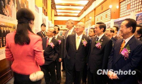 “天府四川寶島行”啟動(dòng)儀式暨經(jīng)貿(mào)合作論壇5月24日上午在臺(tái)北舉行。中共四川省委書記劉奇葆、中國國民黨榮譽(yù)主席吳伯雄及兩岸工商、文化、教育等各界人士出席論壇。汶川大地震兩周年取得的災(zāi)后重建成果贏得了兩岸嘉賓陣陣掌聲。圖為劉奇葆、吳伯雄等參觀四川省情圖片展。 中新社發(fā) 鄒輝 攝
