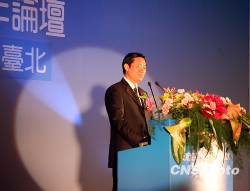 “天府四川寶島行”啟動(dòng)儀式暨經(jīng)貿(mào)合作論壇24日上午在臺(tái)北舉行。中共四川省委書記劉奇葆、中國國民黨榮譽(yù)主席吳伯雄及兩岸工商、文化、教育等各界人士出席論壇。汶川大地震兩周年取得的災(zāi)后重建成果贏得了兩岸嘉賓陣陣掌聲。圖為劉奇葆在論壇上致辭。 中新社發(fā) 鄒輝 攝