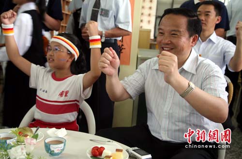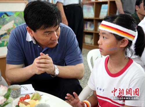 正在臺(tái)灣參訪的四川代表團(tuán)26日來(lái)到臺(tái)灣“9·21”地震災(zāi)區(qū)參觀考察。在重建后的埔里小學(xué),來(lái)自汶川地震重災(zāi)區(qū)的市州書(shū)記們與埔里小學(xué)的學(xué)生親密接觸、顯得格外溫情。