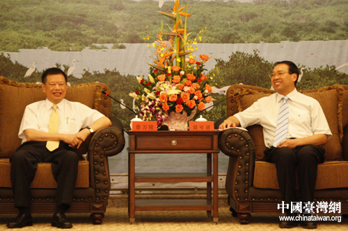 漳州市委書記劉可清18日晚上會見了參加第二屆海峽論壇的部分臺灣嘉賓。(中國臺灣網(wǎng) 肖燕 攝)