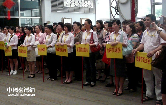 參加海峽兩岸女書(shū)法家作品展的臺(tái)灣婦女團(tuán)體。(中國(guó)臺(tái)灣網(wǎng) 高斯斯 攝)