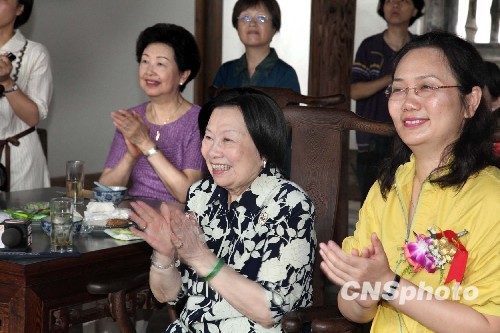 6月23日,第二次回到家鄉(xiāng)福州的臺(tái)灣中華婦聯(lián)總會(huì)主任委員辜嚴(yán)倬云女士,來(lái)到三坊七巷衣錦坊始建明萬(wàn)歷年間的水榭戲臺(tái),聽(tīng)著久違的家鄉(xiāng)戲閩劇,十分開(kāi)心。 中新社發(fā) 楊婀娜 攝