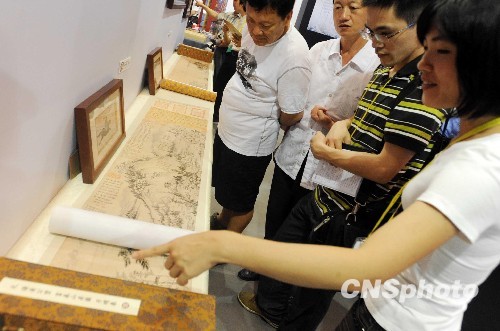 6月19日,首度參展亮相海峽兩岸文博會的臺北故宮博物院展示包括晉代王羲之、元代黃公望、清代朗世寧等中國古代著名國畫、書法家的名作高仿復(fù)制品,吸引觀眾近距離欣賞。當(dāng)日,以“一脈傳承,創(chuàng)意未來”為主題的第三屆海峽兩岸文博會在廈門開幕。 中新社發(fā) 劉可耕 攝