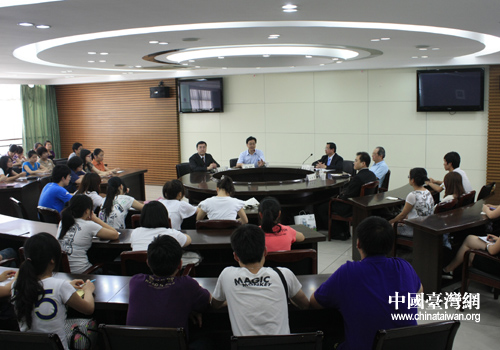 嶺東科技大學(xué)考察團(tuán)與湖州職業(yè)技術(shù)學(xué)院學(xué)生進(jìn)行座談(圖片來源:湖州市臺(tái)辦)