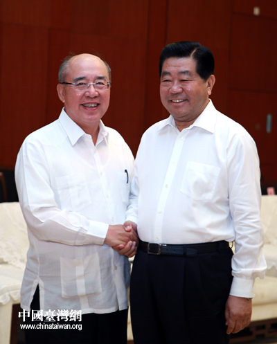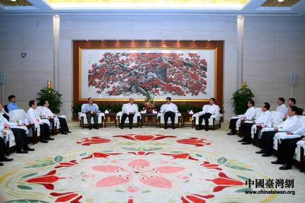 中國(guó)臺(tái)灣網(wǎng)7月9日廣州消息 中共中央政治局常委、全國(guó)政協(xié)主席賈慶林7月9日在廣州會(huì)見中國(guó)國(guó)民黨榮譽(yù)主席吳伯雄及應(yīng)邀參加第六屆兩岸經(jīng)貿(mào)文化論壇的兩岸各界人士。(記者 鐘寶華)