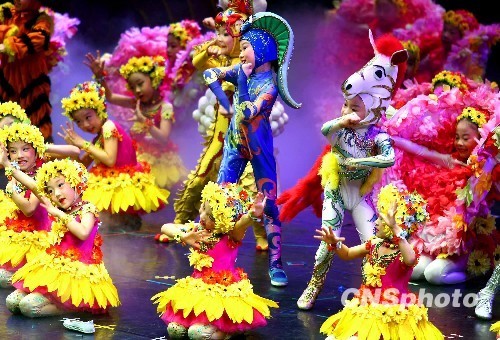 北京藍天兒童藝術團7月28日晚在臺北進行公益演出,所得善款將全部捐獻給臺南災區(qū)。演出的歌舞劇《十二吉祥》以中華民族傳統(tǒng)生肖文化為主題,展示濃郁的中華民族傳統(tǒng)風情和燦爛不息的民族文化底蘊。 中新社發(fā) 宋吉河 攝