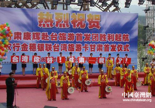 首發(fā)儀式熱烈而又隆重,活動(dòng)現(xiàn)場(chǎng)焰火鳴放、氣球飛揚(yáng)。甘肅省委常委、副省長(zhǎng)劉永富和相關(guān)部門負(fù)責(zé)同志為甘肅首批赴臺(tái)旅游的80多名游客佩戴了花籃、贈(zèng)送了《康輝臺(tái)灣行》紀(jì)念冊(cè)和康輝VIP旅游卡。臺(tái)灣旅游觀光協(xié)會(huì)負(fù)責(zé)人賴瑟珍為甘肅赴臺(tái)旅游首發(fā)儀式發(fā)來(lái)賀電。臺(tái)灣13家旅游接待部門的負(fù)責(zé)人專程從臺(tái)北趕來(lái)參加了首發(fā)儀式。甘肅康輝國(guó)際旅行社的負(fù)責(zé)人在儀式上發(fā)言致辭。