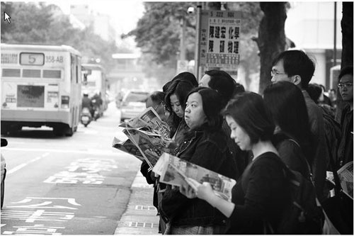 臺灣民眾在街頭閱讀報紙、雜志
